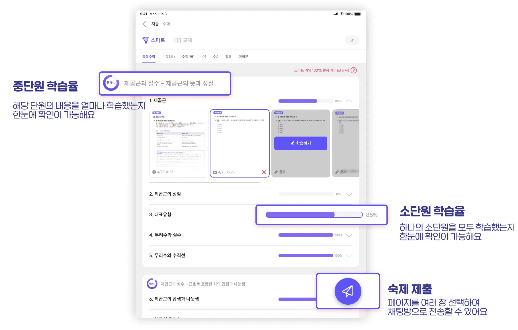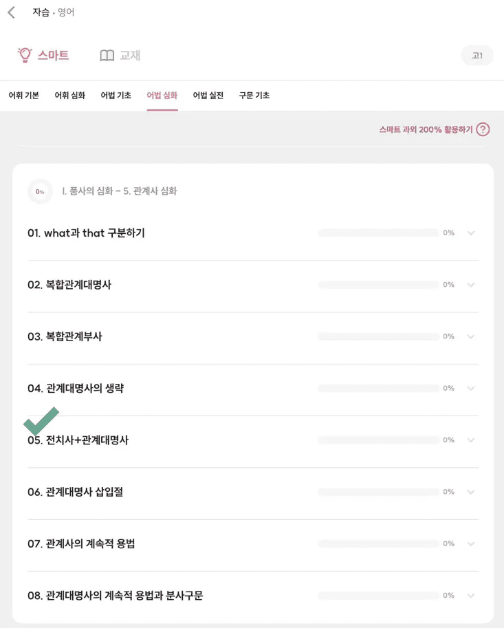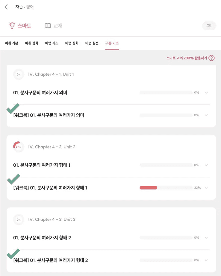 특정 과목에서 약점을 극복? => 소단원 선택 학습
