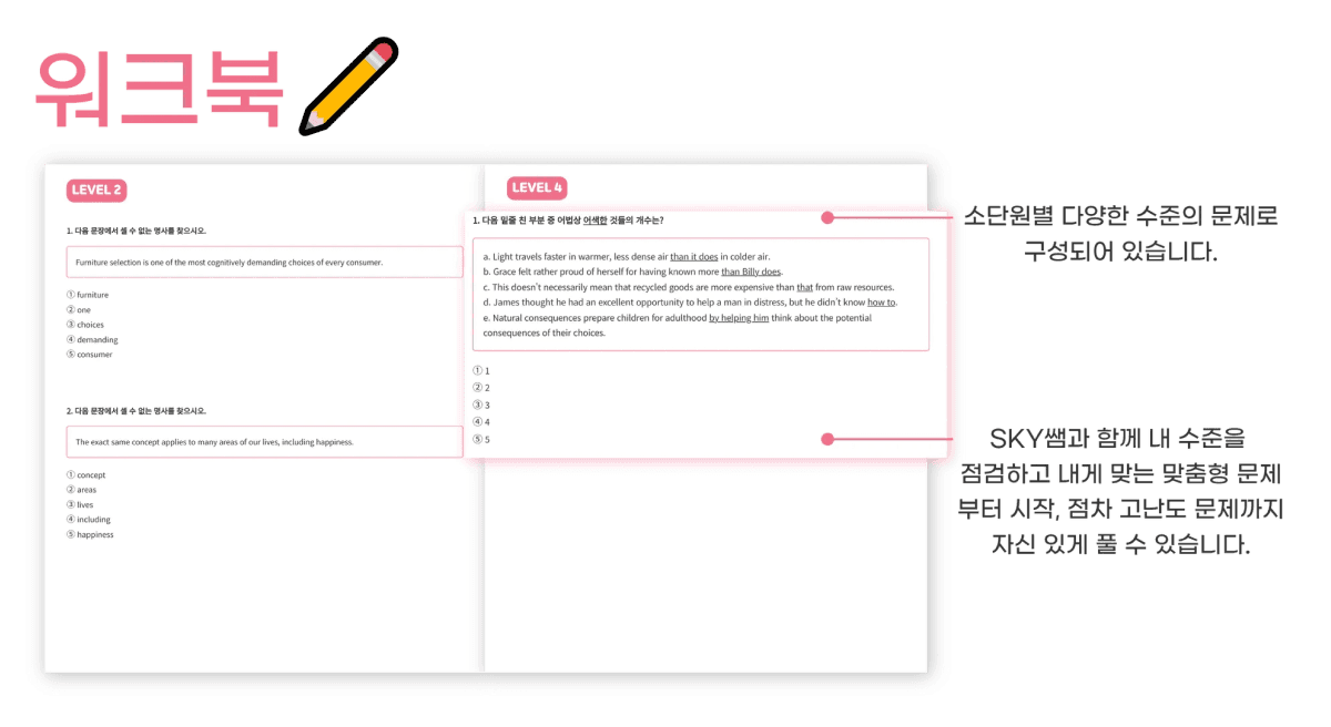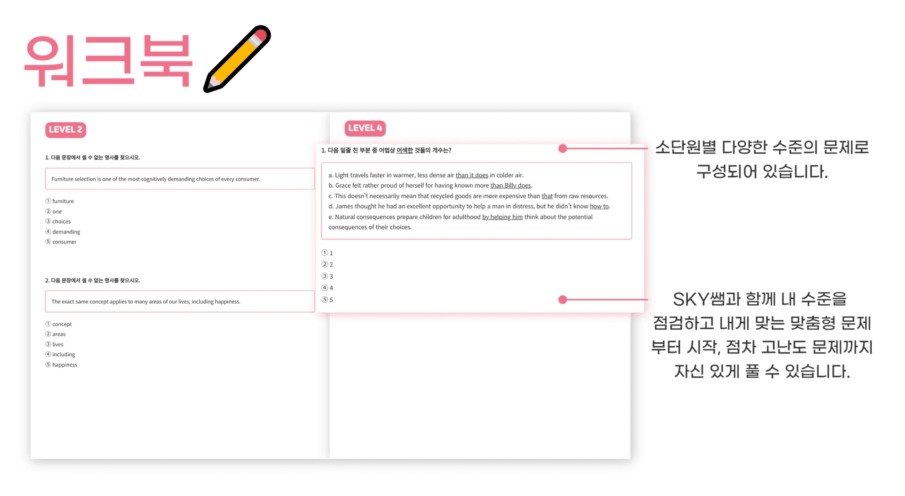 · 학습한 구문을 단계별로 복습할 수 있는 워크북 추가 구성