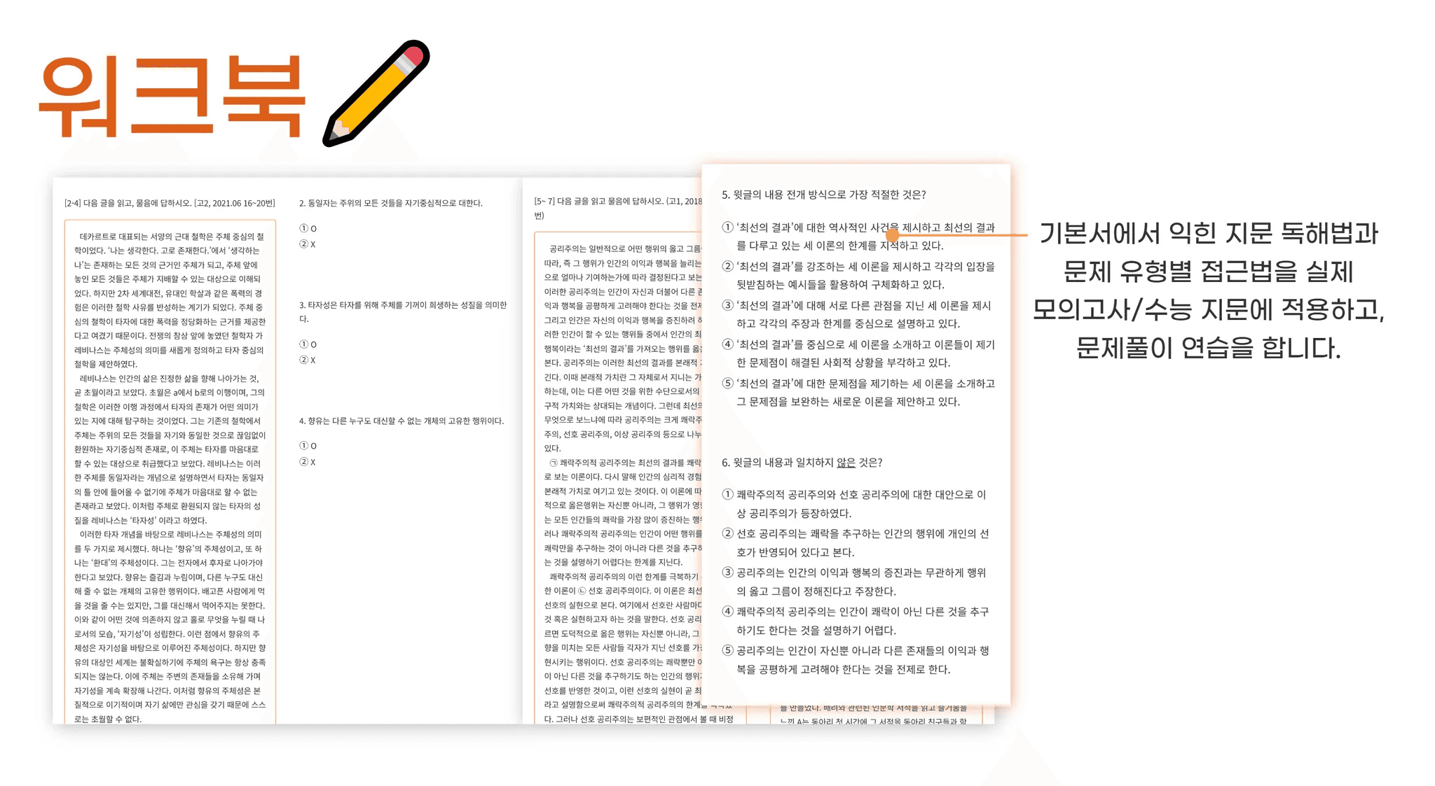 · 유형 전략을 반복적으로 적용하여 유형에 익숙해질 수 있도록 워크북 추가 구성