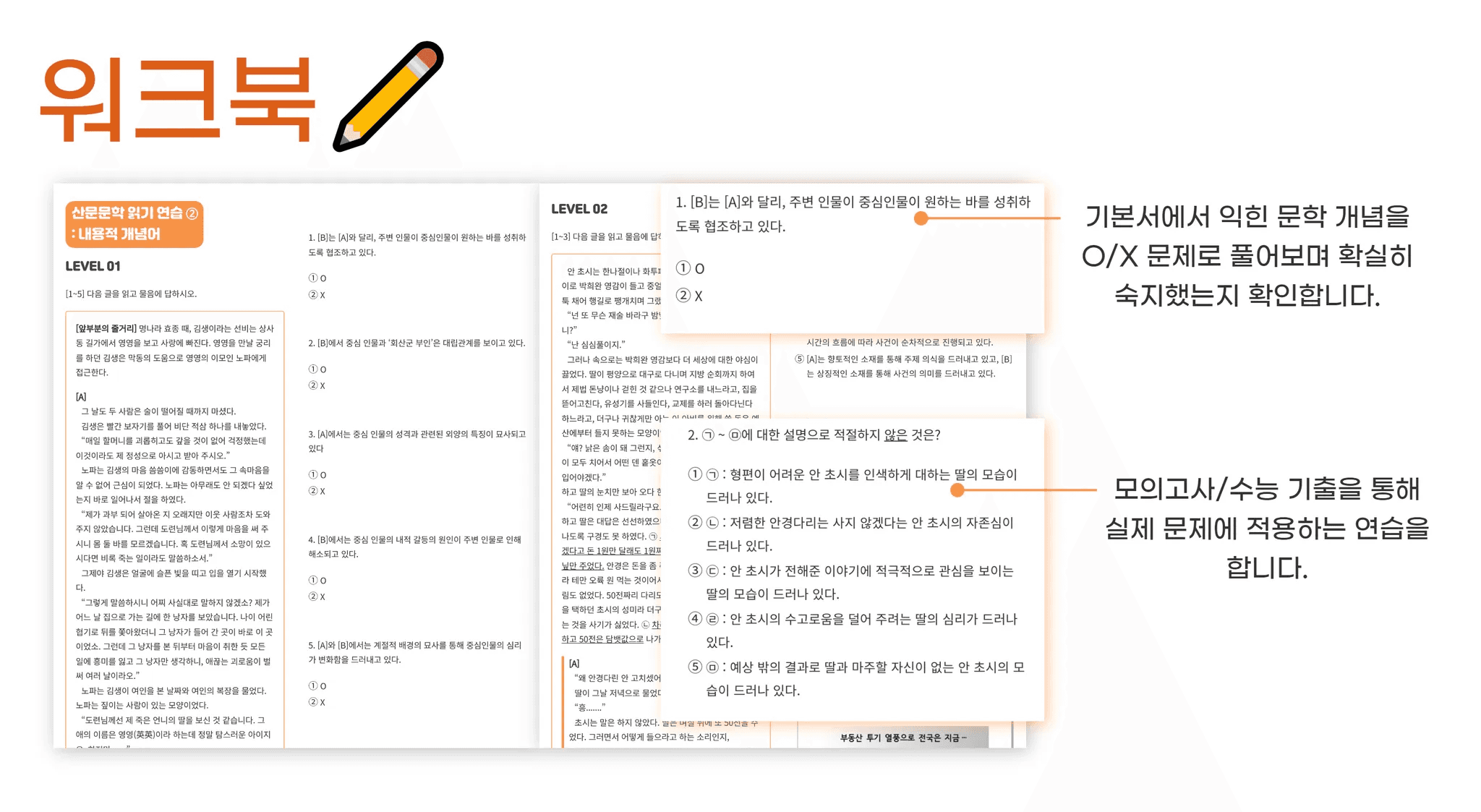 어휘, 문학 개념, 독해 전쟁Basic, 독서 기본, 독서 심화,