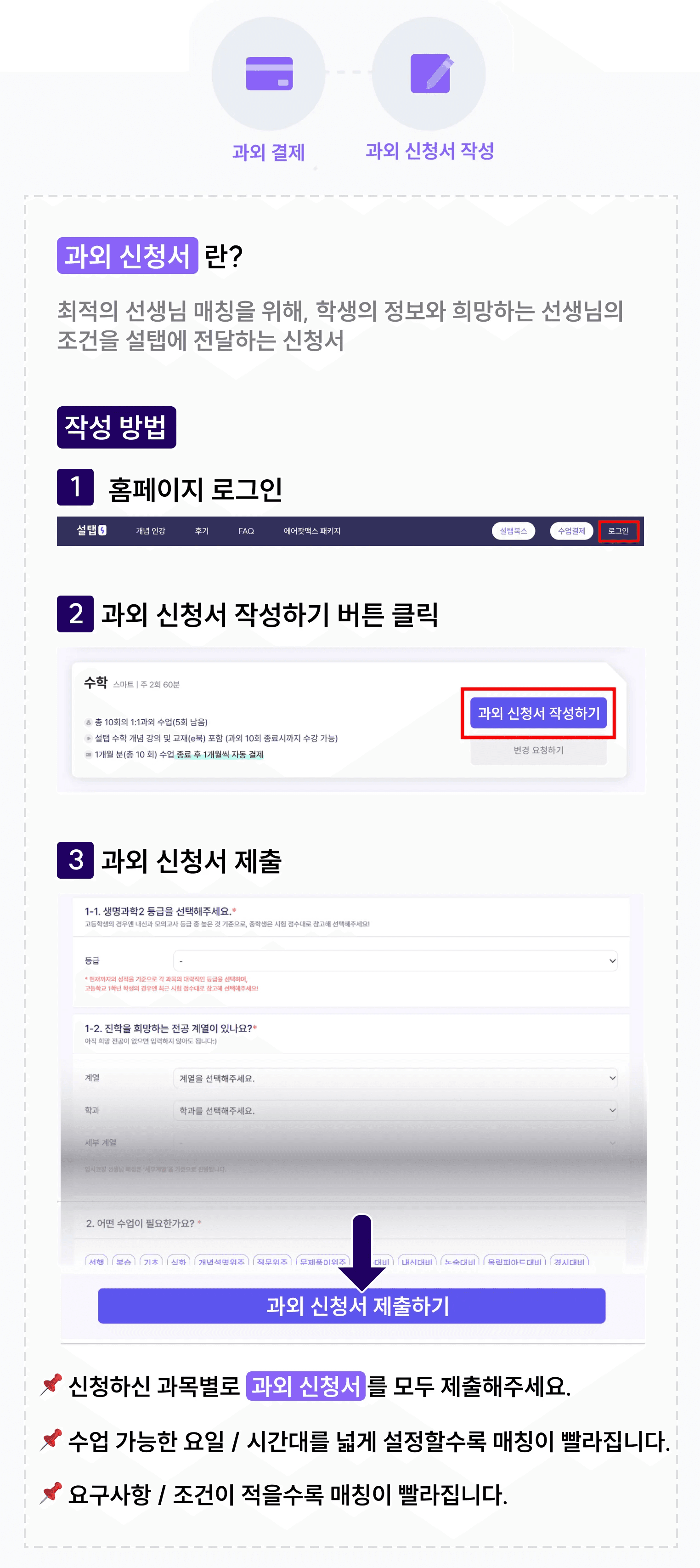 2️⃣ 과외 신청서 작성 -> 선생님 매칭